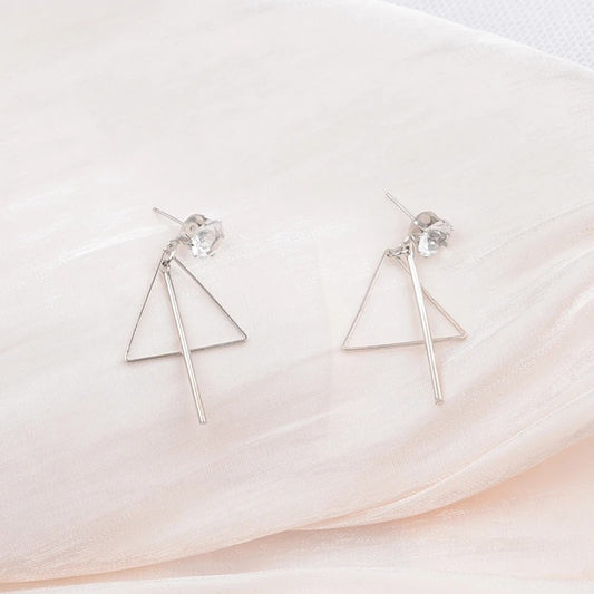 Korean Silver Hollow Triangle Crystal Pendant Earrings Women