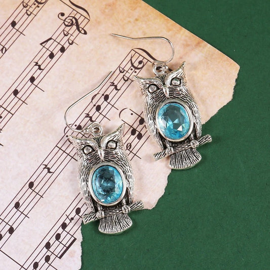Creative Owl Design Earrings Antique Silver Blue Crystal Women
