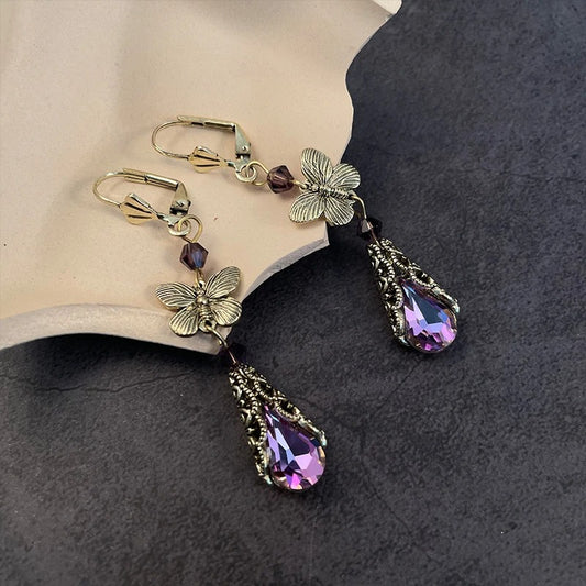 Purple Crystal Floral Dangle Earrings Elegant Jewelry for Women