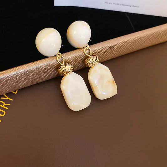 Geometric Water Drop Resin Dangle Earrings for Women Retro Brown