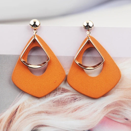 Wooden Water Drop Earrings Women Gold Metal Dangle Jewelry