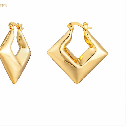 Hollow Square Hoop Earrings Women Gold Plated Stainless Steel