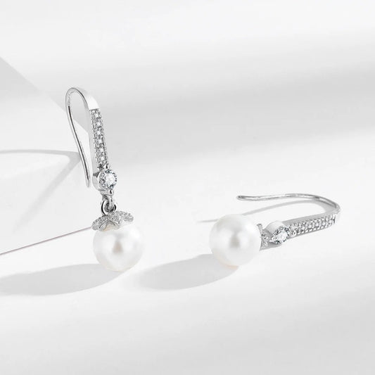 925 Sterling Silver Drop Earrings with Zircon & Pearl for Women