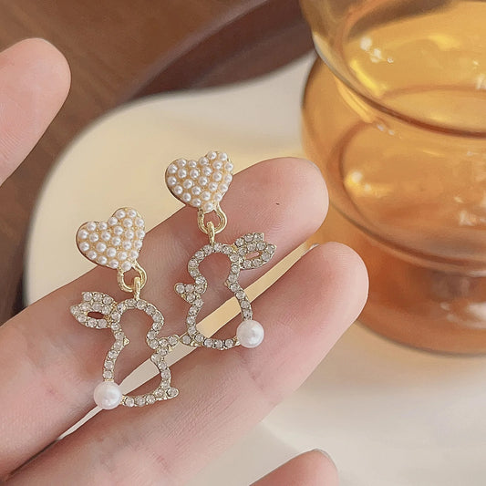 Trendy Rabbit Drop Earrings Crystal Pearl Cute Dangle Jewelry