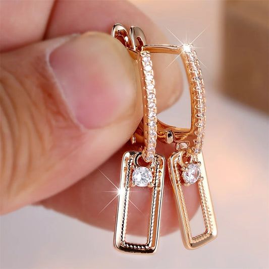 White Zircon Rectangle Pendant Hoop Earrings Gold Women Jewelry