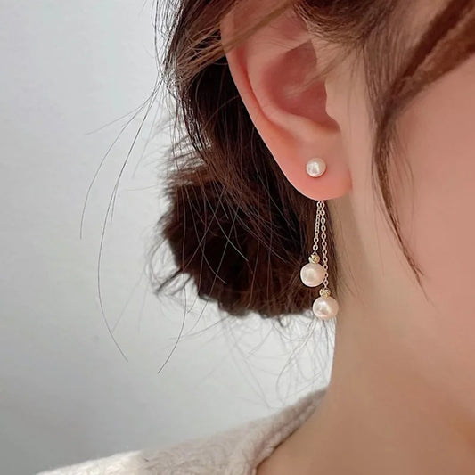 Korean Pearl Tassel Drop Earrings Women Wedding Party Jewelry
