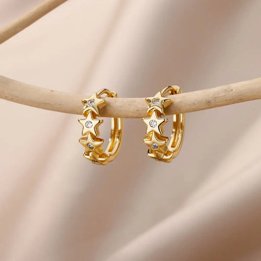 Stainless Steel Star Hoop Earrings For Women 2025 Trend New In Luxury Gold Color Earrings Ear Jewelry Gift