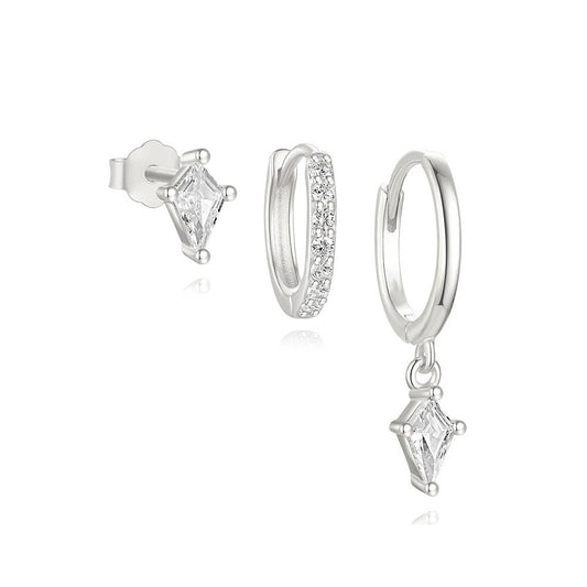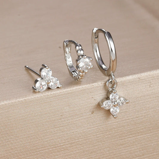 3PCS Exquisite Zircon Pendant Hoop Earrings Set Stainless Steel Geometry Triangle Cartilage Piercing Earring Statement Jewelry