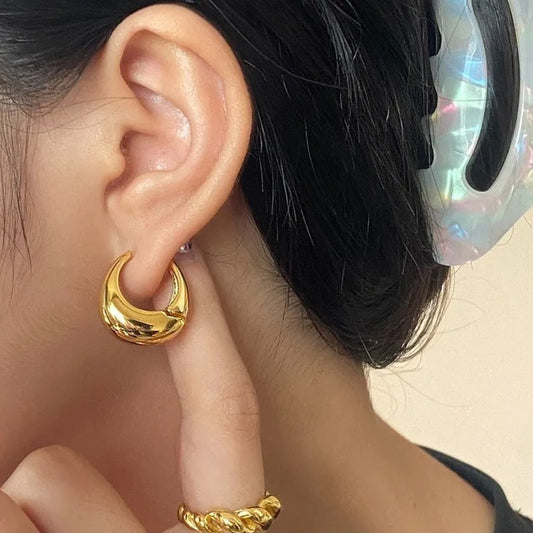 Stainless Steel Smooth Metal Chunky Hoop Earrings for Women Fashion Round Circle Hoops Statement Earrings 2025 Trendy Jewelry