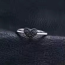 Heart Love 925 Sterling Silver Black Spinel Ring for Women Cute Promise Gemstone Jewelry