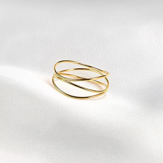 Top-Selling Three Layered Wave Ring for Women 18K Gold PVD Plated Stainless Steel, Waterproof & Trendy 2025 Jewelry