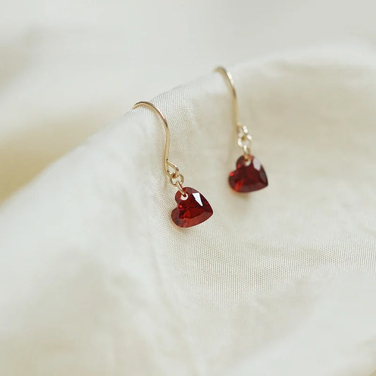 Exquisite Pomegranate Wine Red Zircon Love Heart Dangle Earrings For Women Simple Desin Gold Color Ear Hook Party Jewelry N717