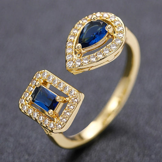 Geometric Shaped Cuff Opening Rings for Women Silver Color/Gold Color Noble Cubic Zirconia Ring Accessory Fashion Jewelry