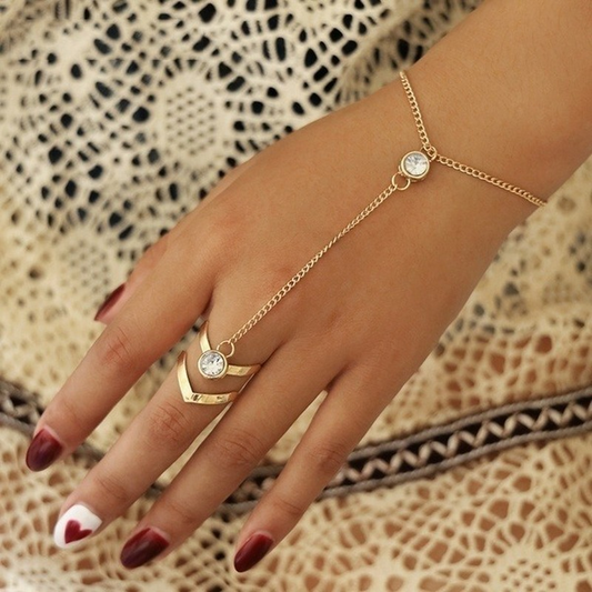 Fashion Women's Gold Color Hand Chain Bracelets With Crystal Exquisite Finger Bracelet Wedding Jewelry