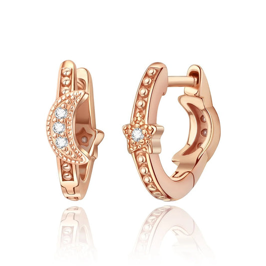 Beautiful 925 Sterling Silver Rose Gold Combination Ring Star and Moon Irregular Earrings Matching Jewelry Gifts for Sisters