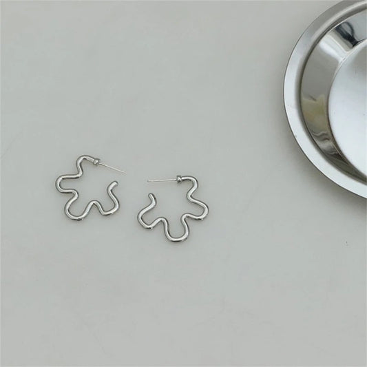 Korean Fashion Exaggerated Hollow Irregular Flower Hoop Earring for women Silver Color Girls Aesthetic Jewelry