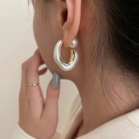 New Design Pearl Hoop Earrings CC Shape Irregular Metal Jewelry