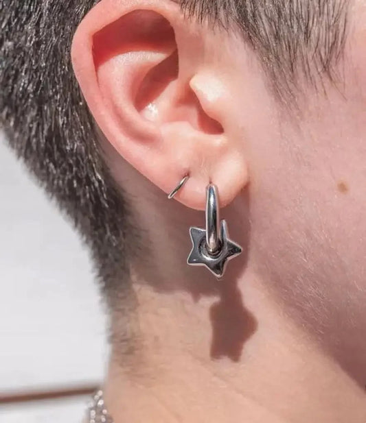 Stainless Steel Chunky Star Hoop Earrings for Women