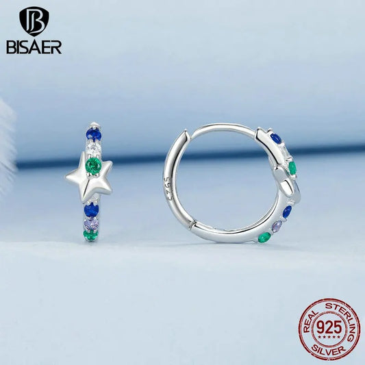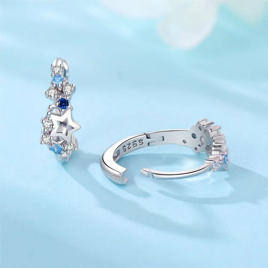 925 Sterling Silver Blue Star Hoop Earrings Women Party Gift