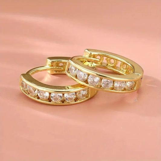 Gold Circle Hoop Earrings with Cubic Zirconia for Women