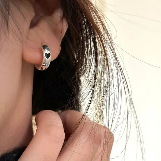 Women’s Silver Heart Hoop Earrings Temperament Wedding Jewelry