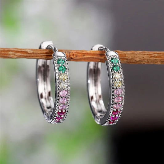 Women’s Silver Hoop Earrings Sparkling Cubic Zirconia Jewelry