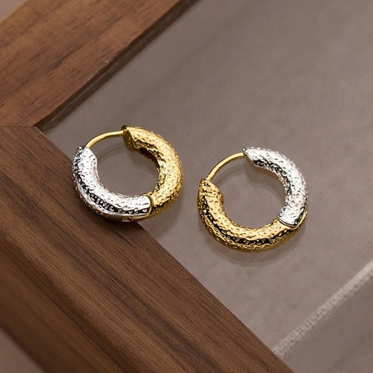 Women’s Glossy Two-Tone Round Hoop Earrings Retro Hiphop Ear Hoops