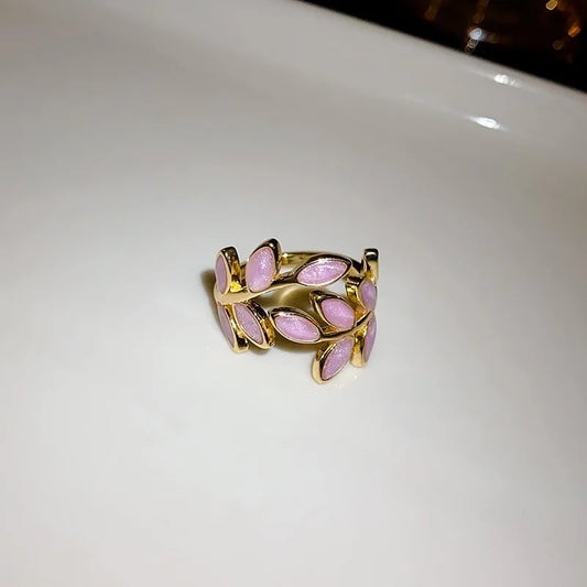 Leaf Open Ring for Women, Light Luxury Colorful Oil Drop Finger Rings, Hand Jewelry, Elegant Prom Party Wedding Accessories