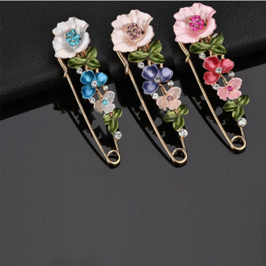 Elegant Flower Brooch Pins For Women Rhinestone Plant Enamel Collar Lapel Pin Badge Cardigan Scarf Dress Clothes Jewelry Gifts