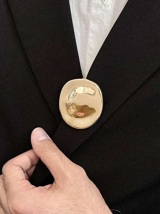 Greatera Trendy Women's Brooch Irregular Folded Round Metal Pins Gold Color Brooches Accessories Party Jewelry Gift