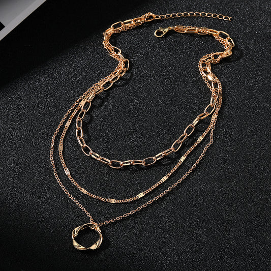 IPARAM Gold Color Multi Layered Chains Necklace for Women Girls Circle Pendant Vintage Necklaces Fashion Jewelry Gifts