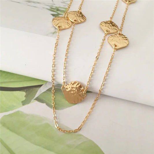 Trendy Gold Color Plating Hammered Leaf Strand Layered Long Necklace For Women Girl Sweater Decoration Party Anniversary Party