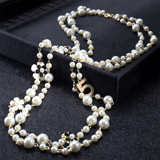 long pendants layered Camellia pearl necklace collares de moda flower party jewelry