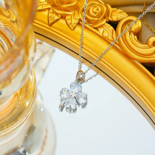 Stainless Steel Chain Cute Zircon Four Leaf Clover Pendant Necklaces for Women Girls Lucky Jewelry Accessories Gifts for Friends