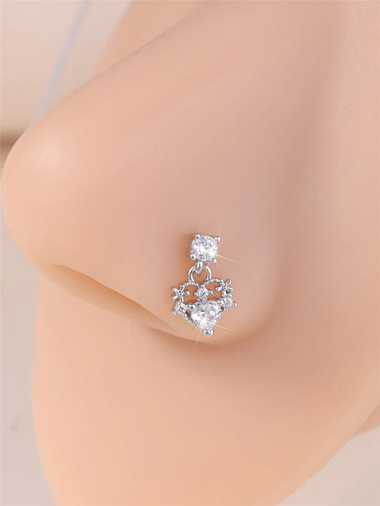 Thin Dangle Nose Studs Mini Pink CZ Heart Charm Dangle Nose Bone for Women Girl Cute Nose Piercing Jewelry Nostril Jewelry 24G