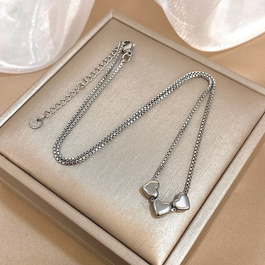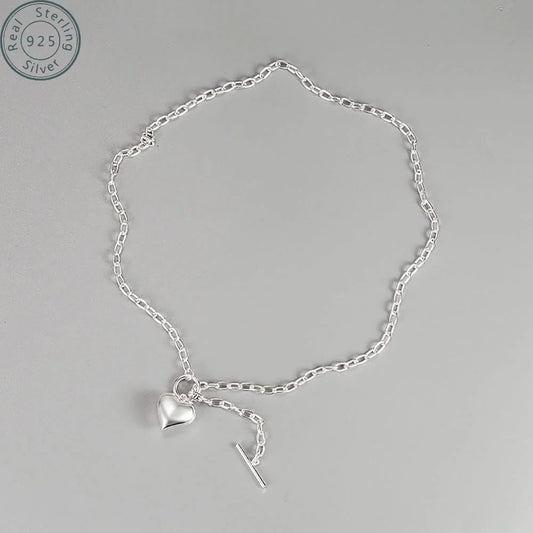 925Sterling Silver Cute Simple Heart Pendant Necklace Trendy Elegant Short Clavicle Chain Jewelry for Women