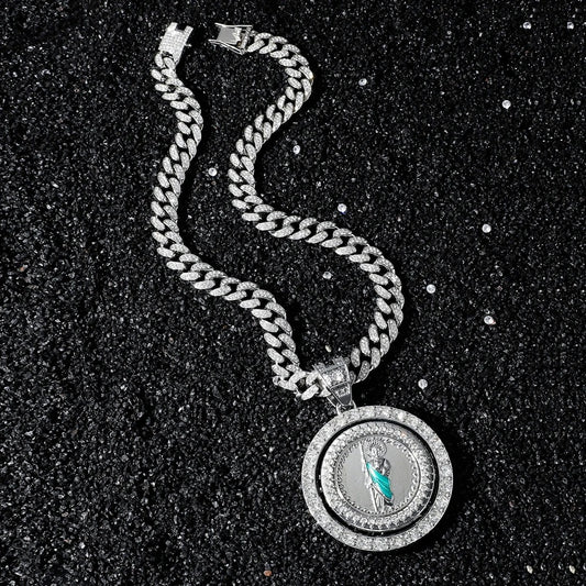 Men's Hip Hop Rotatable Pendant Necklace with Cuban Chain Religious rotation Pendants Jewelry