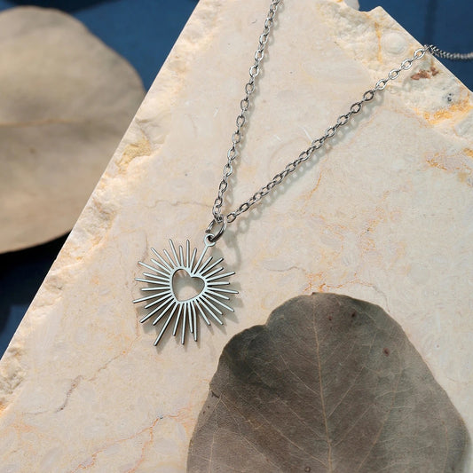 Geometric Heart Sun Pendant Necklace Stainless Steel Choker Neck Chain Women Fashion Jewelry Gift For Mother Lover