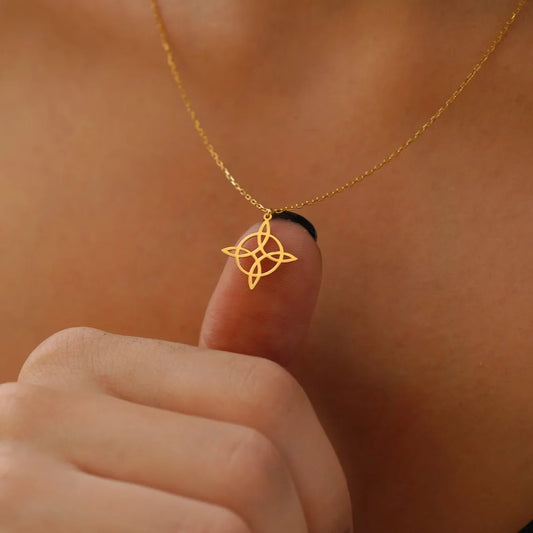 Stainless Steel Jewelry Knot Pendant Necklace Women Amulet Witchcraft Jewelry Geometric Necklace Birthday Gift