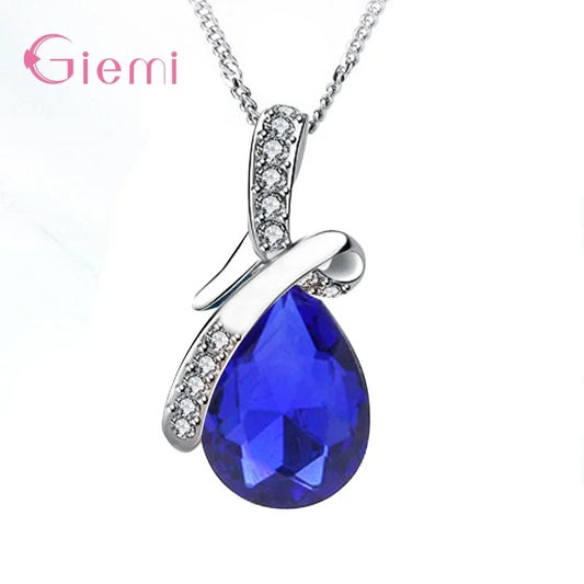 925 Sterling Silver Colorful Cubic Zirconia Waterdrop Pendant Necklace Women Girls Wedding Party Jewelry