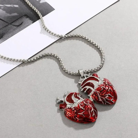 Gothic Rose Red Love Necklace Women's Y2K Grunge Jewelry Dainty Silver Color Tone bloody Human Heart Pendant Personalized Gifts
