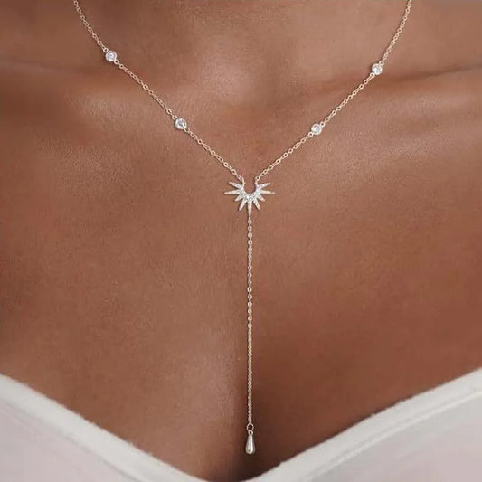 Fashion Gold Color Y-Shaped Sun Pendant Necklaces for Women Girls Luxury Zircon Long Tassel Chest Chain Party Jewelry Gifts