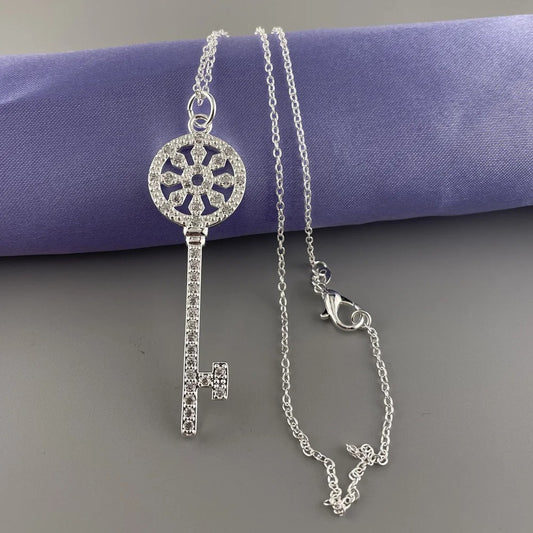Fashionable Simple 925 Sterling Silver Necklace Cute Key Pendant Necklace For Women Jewelry Gift 46CM