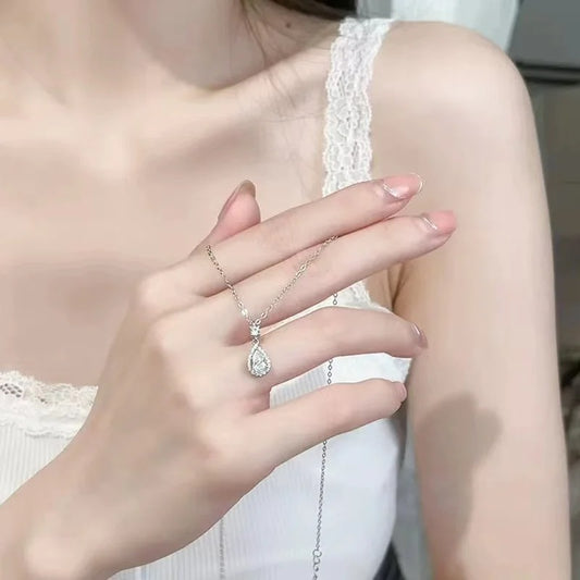 Silver Teardrop Shape Necklace Personalized Charm Zirconia Pendant Choker Birthday Party Gift Women Fine Jewelry
