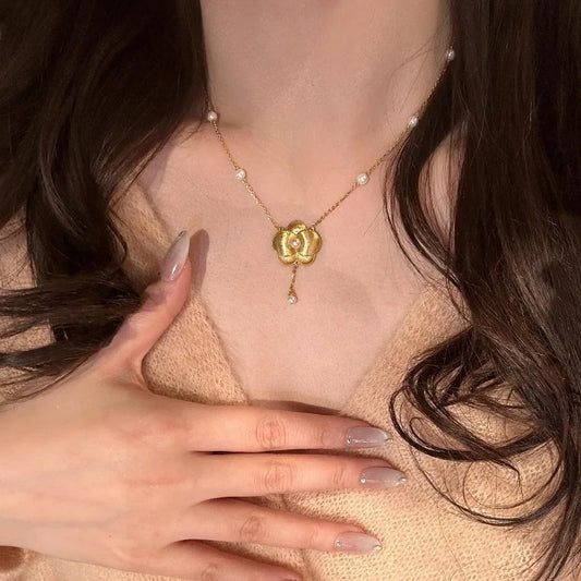 Classic Retro Fashion Brushed Butterfly Orchid Pearl Necklace Tassel Luxury Exquisite Clavicle Chain Wedding Jewelry Gifts