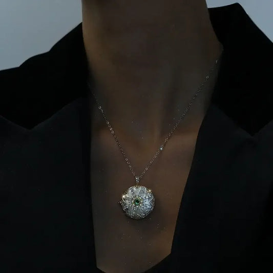 New in vintage silver 925 inlay diamond dazzling round necklaces fashion and exquisite opened green gem pendant wedding jewelry
