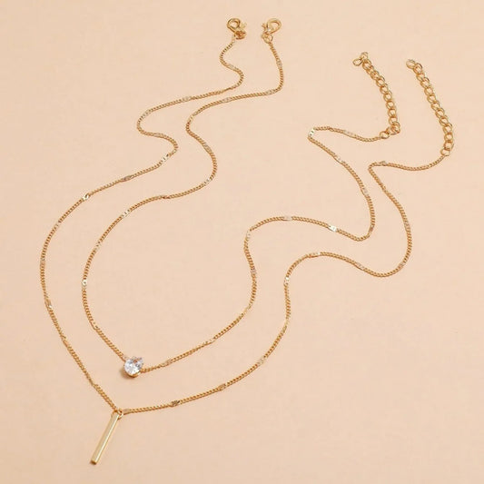 Multi-layer Five-pointed Star Heart Shape Water Drop Pendant Chain Necklace Alloy Material Glass Collarbone Chain for Sexy Women's