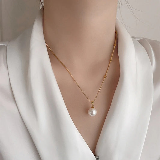 New Stainless steel Bead Chain Splicing Pearl Pendant Necklace For Womens sexy Collarbone Chain Fashion Accessories Jewelry