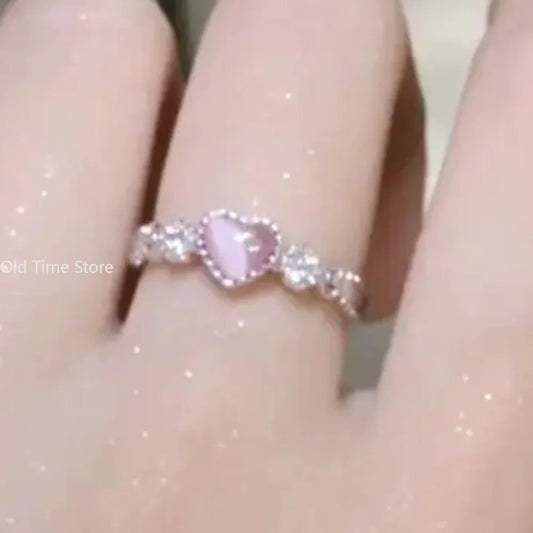 Trend Pink Love Heart Crystal Rings for Women Kpop Love Zircon Open Ring Irregular Aesthetic girl Rings Jewelry