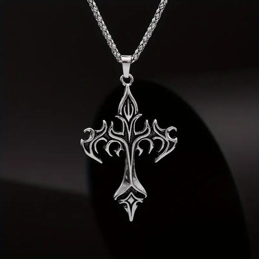 Stainless Steel Necklace Flame Retro Cross Titanium Steel Casting Men/Women Pendant Necklace Type